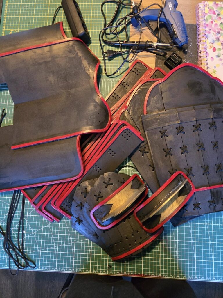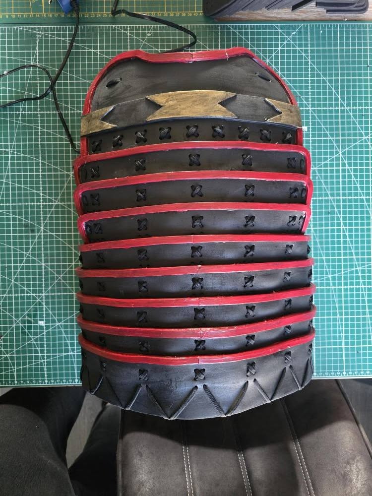 Taking to the next level of building with foam, I was seraching around for a good costume and came across of a complete armour of a Samurai. This was provided by SKS Props in PDF. I then was able to print out these templates and start drawing onto the foam. The foam thickness was ranged from 4mm-6mm.